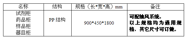 門(mén)板采用12mm瓷白PP板、柜體部分采用8mm瓷白制作而成,上玻璃門(mén)下全PP板,上二層層板下一層層板,優(yōu)質(zhì)PP材料,優(yōu)質(zhì)PVC拉手及腳鏈,具有防腐蝕、耐酸堿、阻燃、防水的優(yōu)點(diǎn);可帶抽風(fēng)口;直接連接到實(shí)驗(yàn)室內(nèi)風(fēng)管上。