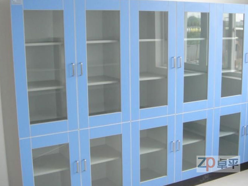 鋁木結(jié)構(gòu),門板采用18mm厚優(yōu)質(zhì)中纖板,貼一面藍(lán)一面灰色三聚氰胺板。柜體采用18mm厚三聚氰胺板;所有斷面經(jīng)優(yōu)質(zhì)2mmPVC封邊防水處理,四邊倒角圓滑處理;上雙開玻璃門,下雙開木門,木制層板,通透式設(shè)計,美觀大方。所有板件采用拆裝式三合一連接,結(jié)構(gòu)穩(wěn)固,承重性能好且易于拆遷,利于在實驗室這個特殊的工作環(huán)境使用。